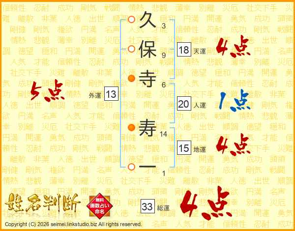 久保寺寿一さんの総運は33画の4点!