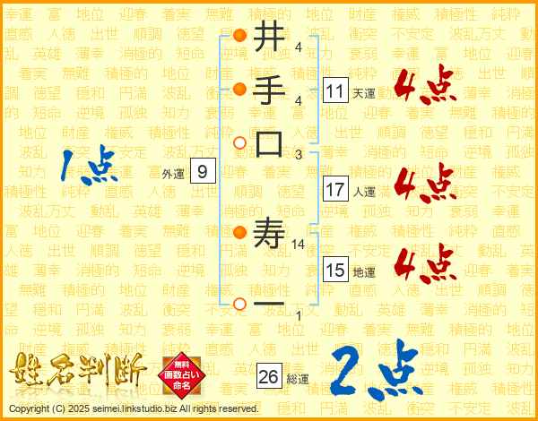 井(4画)手(4画)口(3画) 寿(14画)一(1画)