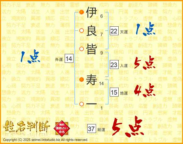 伊良皆寿一さんの総運は37画の5点!