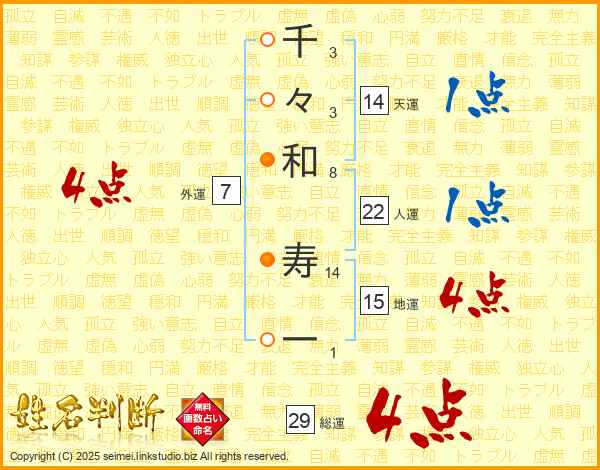 千々和寿一さんの総運は29画の4点!