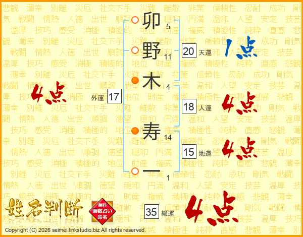 卯野木寿一さんの総運は35画の4点!