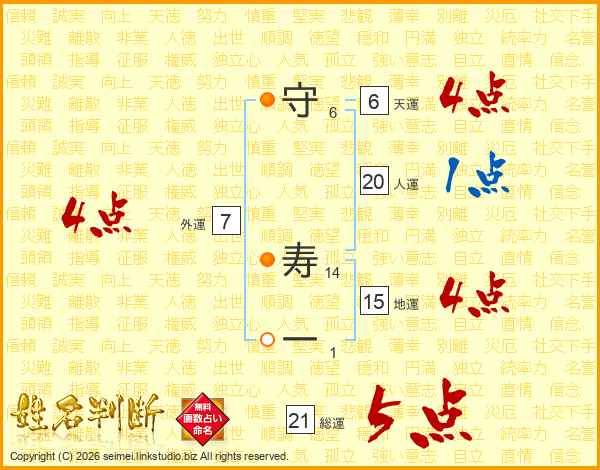 守寿一さんの総運は21画の5点!