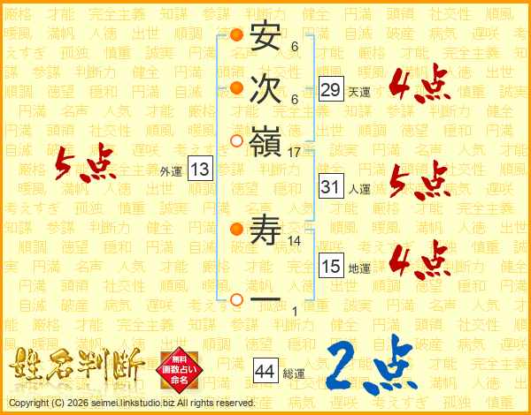 安(6画)次(6画)嶺(17画) 寿(14画)一(1画)