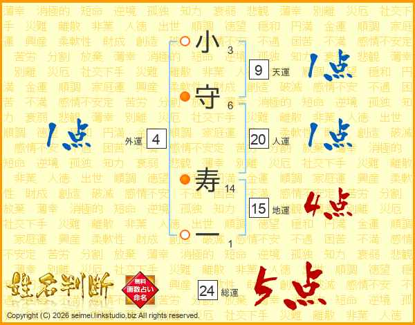 小守寿一さんの総運は24画の5点!