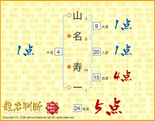 山名寿一さんの総運は24画の5点!