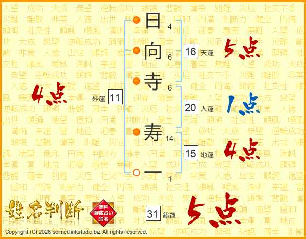 日向寺寿一さんの総運は31画の5点!