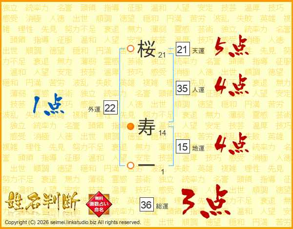 桜寿一さんの人運は35画の4点!