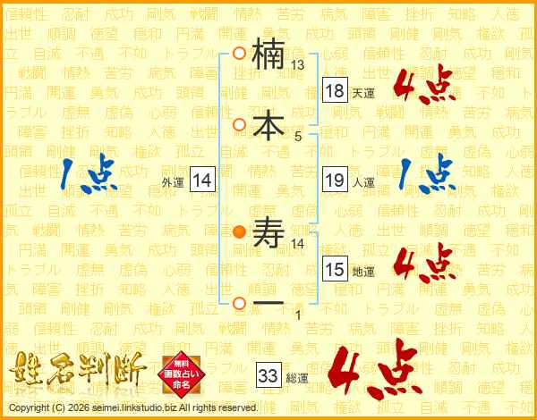 楠本寿一さんの総運は33画の4点!