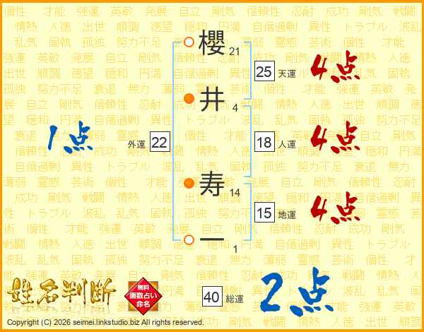 櫻井寿一さんの総運は40画の2点!