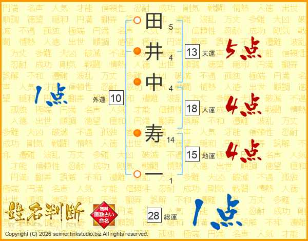 田井中寿一さんの総運は28画の1点!