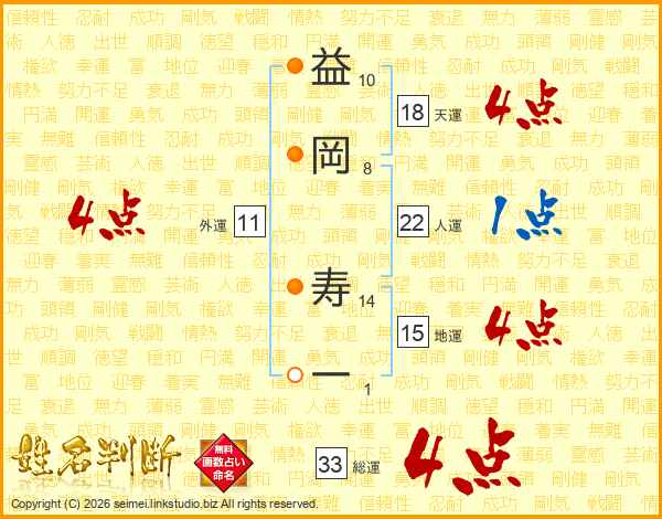 益岡寿一さんの総運は33画の4点!