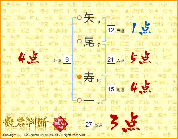 矢尾寿一さんの総運は27画の3点!