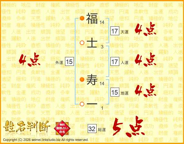 福士寿一さんの外運は15画の4点!