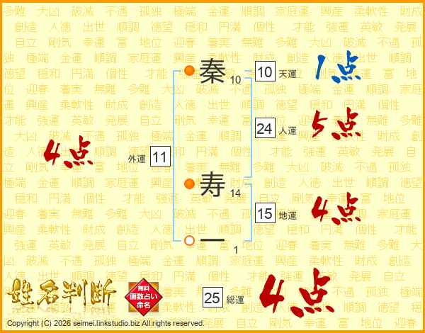 秦寿一さんの総運は25画の4点!