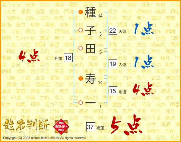 種(14画)子(3画)田(5画) 寿(14画)一(1画)