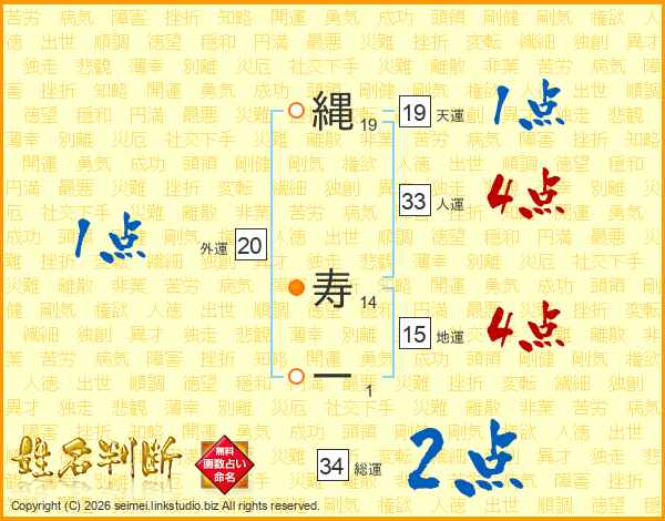 縄寿一さんの人運は33画の4点!