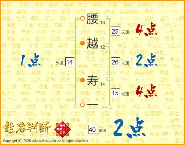 腰越寿一さんの人運は26画の2点!