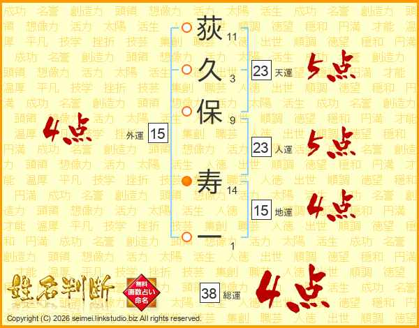 荻久保寿一さんの総運は38画の4点!