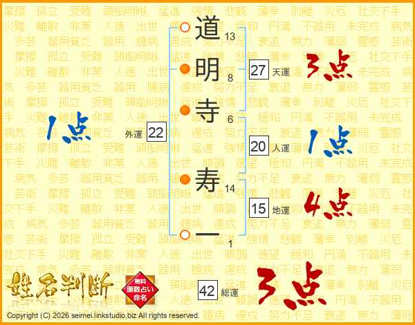 道明寺寿一さんの総運は42画の3点!