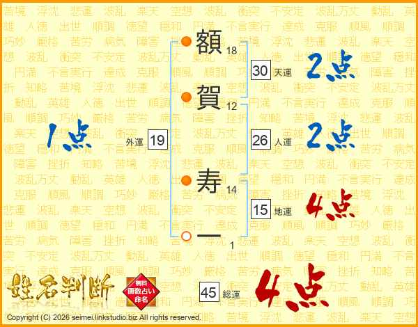 額賀寿一さんの総運は45画の4点!