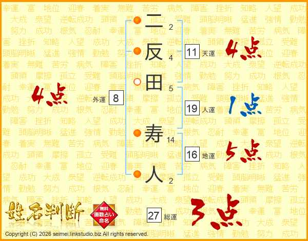 二反田寿人さんの総運は27画の3点!