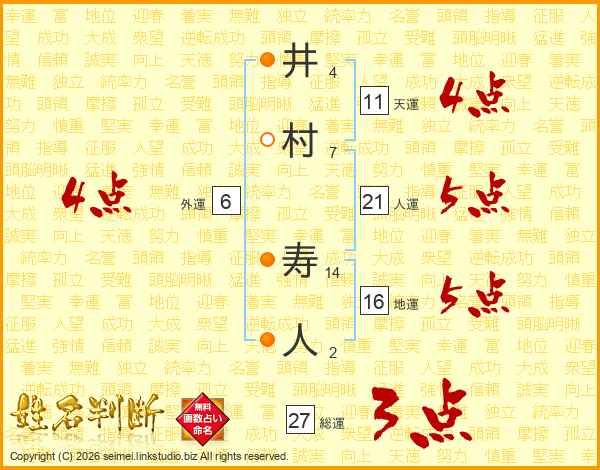 井村寿人さんの総運は27画の3点!
