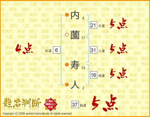 内薗寿人さんの総運は37画の5点!