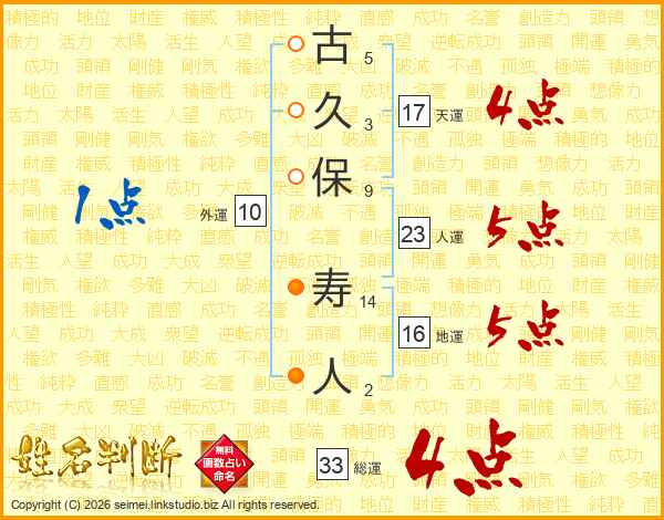 古(5画)久(3画)保(9画) 寿(14画)人(2画)