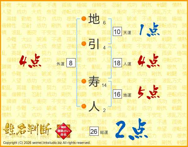 地引寿人さんの総運は26画の2点!
