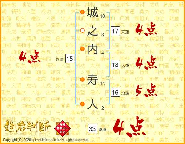 城(10画)之(3画)内(4画) 寿(14画)人(2画)