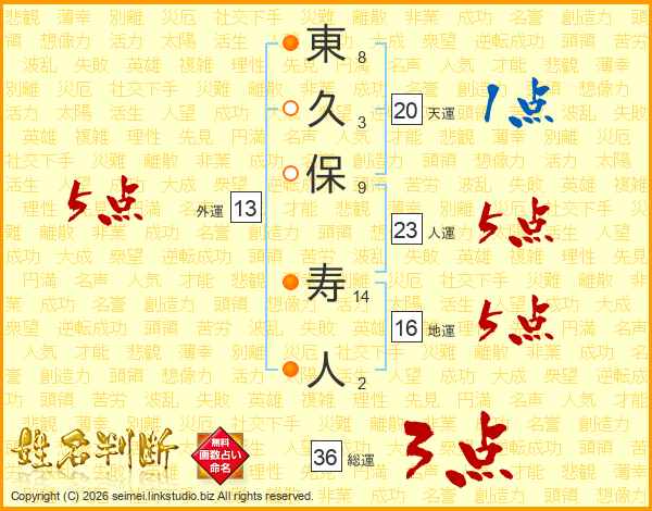 東(8画)久(3画)保(9画) 寿(14画)人(2画)