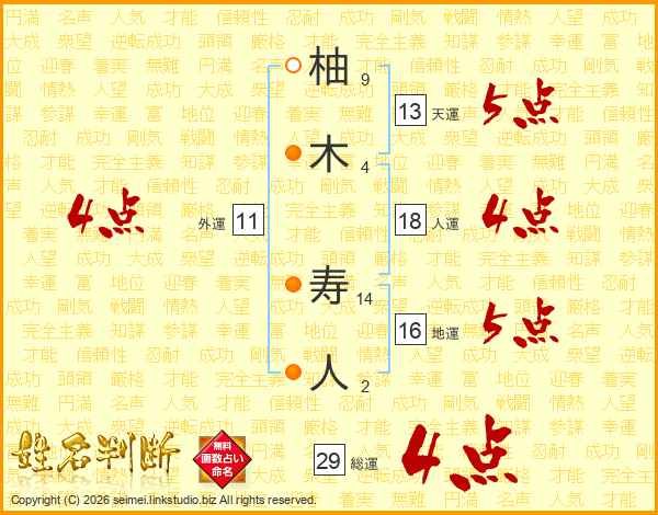 柚木寿人さんの総運は29画の4点!