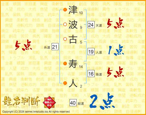津波古寿人さんの総運は40画の2点!