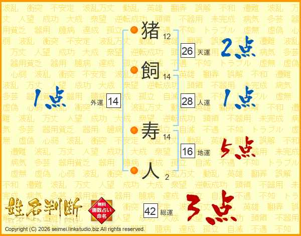 猪飼寿人さんの天運は26画の2点!