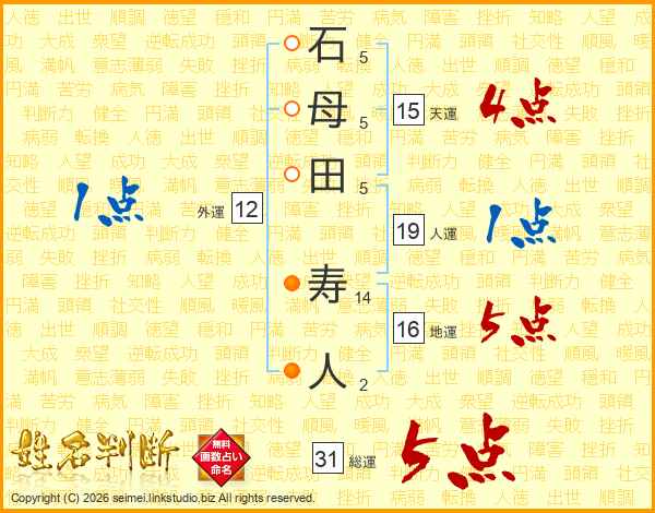 石母田寿人さんの総運は31画の5点!