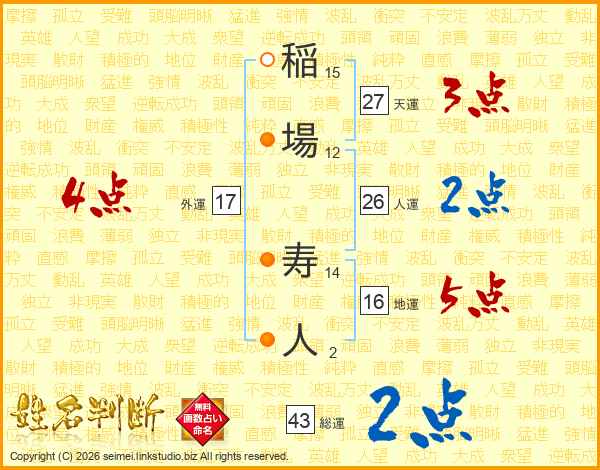 稲場寿人さんの総運は43画の2点!