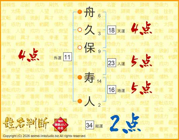 舟(6画)久(3画)保(9画) 寿(14画)人(2画)
