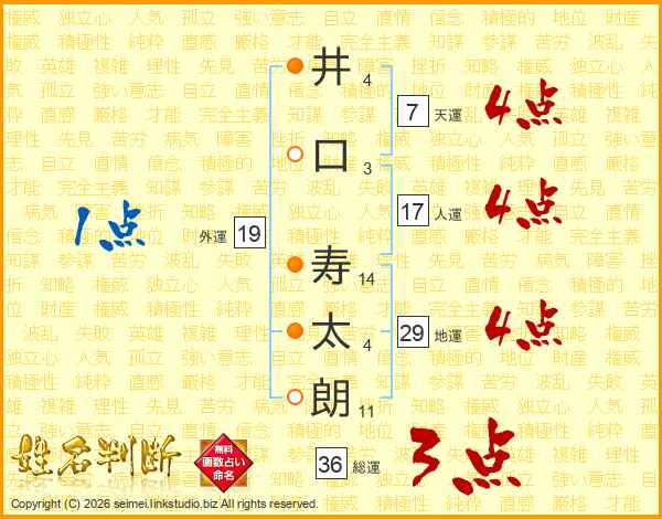 井(4画)口(3画) 寿(14画)太(4画)朗(11画)
