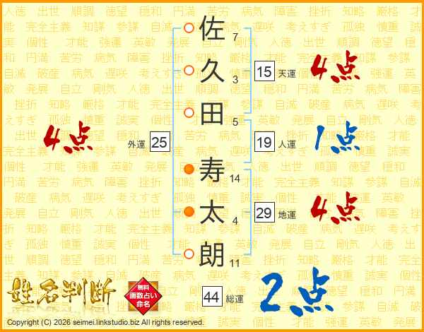 佐久田寿太朗さんの総運は44画の2点!