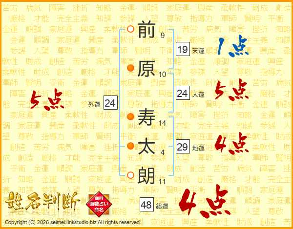 前原寿太朗さんの総運は48画の4点!