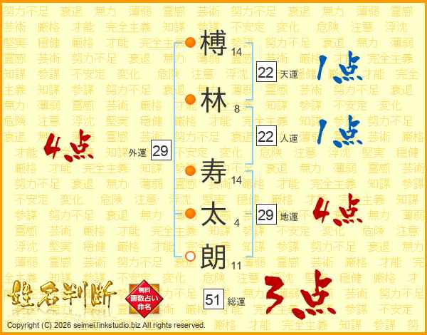 榑(14画)林(8画) 寿(14画)太(4画)朗(11画)