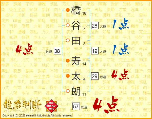 橋谷田寿太朗さんの外運は38画の4点!