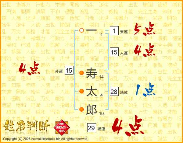 一寿太郎さんの総運は29画の4点!