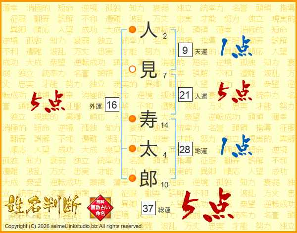 人(2画)見(7画) 寿(14画)太(4画)郎(10画)
