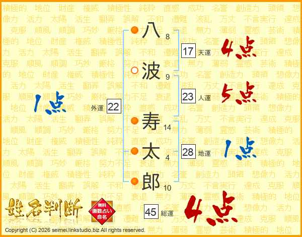 八(8画)波(9画) 寿(14画)太(4画)郎(10画)