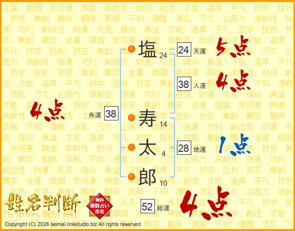 塩寿太郎さんの総運は52画の4点!