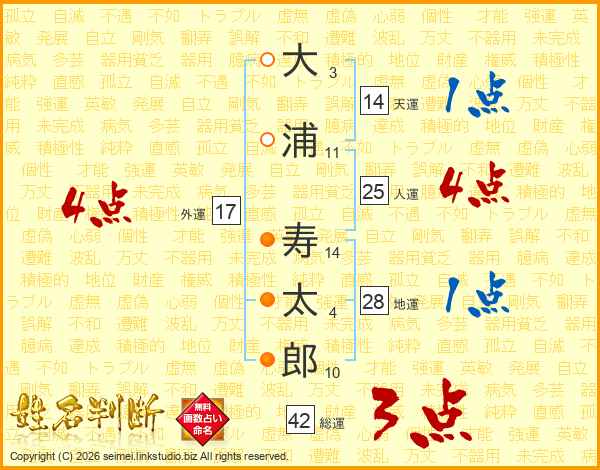 大浦寿太郎さんの外運は17画の4点!