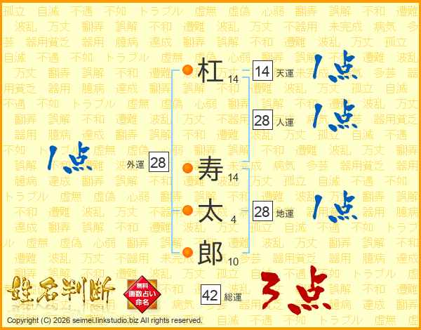 杠寿太郎さんの総運は42画の3点!