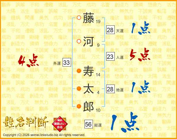 藤河寿太郎さんの総運は56画の1点!