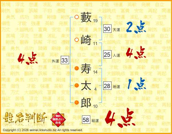 藪崎寿太郎さんの総運は58画の4点!
